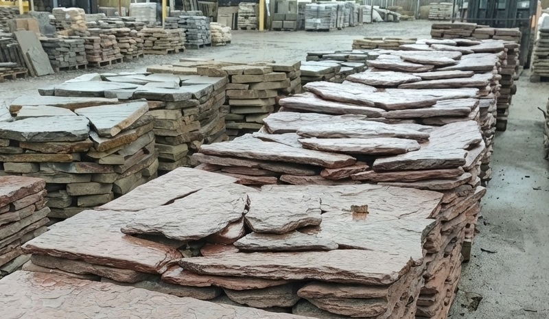 Плитняк песчаник дракон красный галтованный для мощения дорожек 40-50 мм